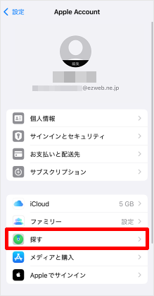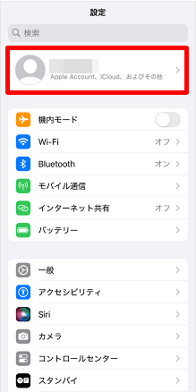 [Apple Account(ご自分の名前)]をタップします。