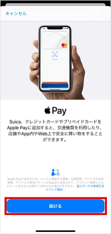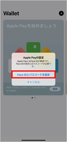 「Apple Pay の設定」画面が表示される場合はパスコードが未設定です。