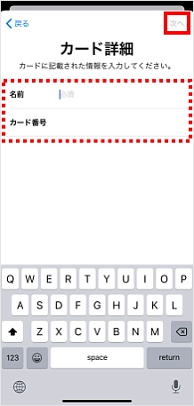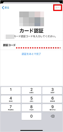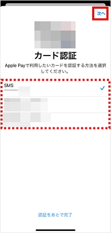 カードを認証する方法をどちらか選択し、[次へ]をタップします。