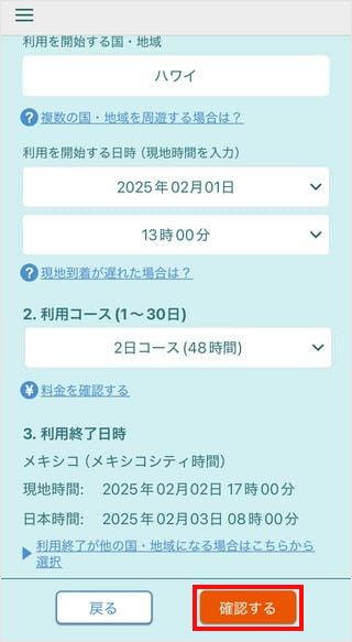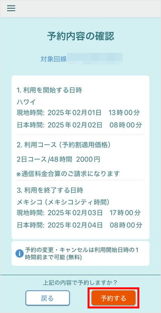 事前予約なしでご利用の場合は、海外渡航先に到着後、利用開始の操作を行ってください。
