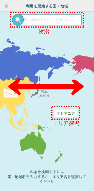 利用を開始する国・地域を検索、またはエリアを選択します。