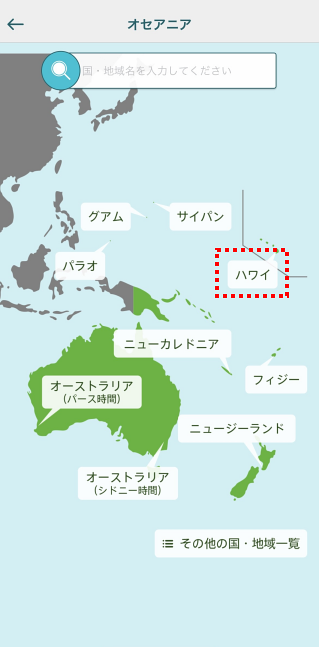※例として「ハワイ」のエリア(オセアニア)を選択します。