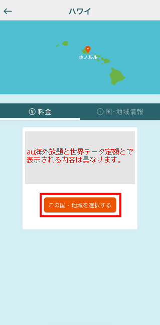選択したエリア内にある、[利用を開始する国・地域名]をタップします。
