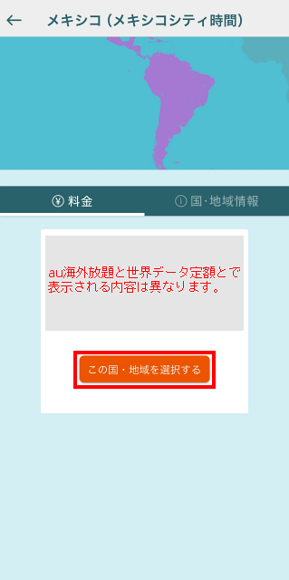 ※例として「メキシコ」のエリア(中南米)を選択します。