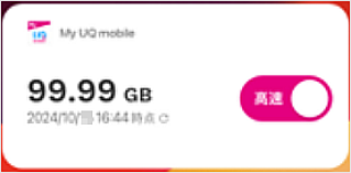 My UQ mobileアプリのウィジェットを設定することで、アプリを開かなくてもデータ通信量のご確認や通信モードの切り替えができます。