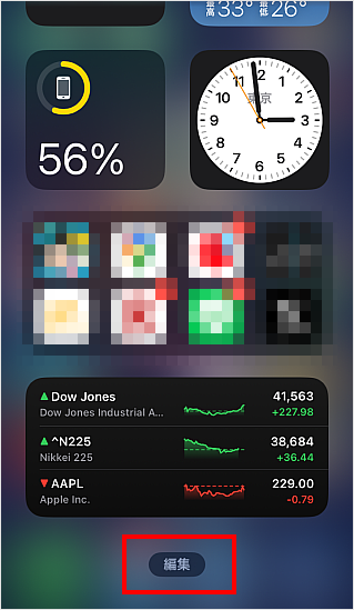 画面をスライドし、画面下部の[編集]をタップします。