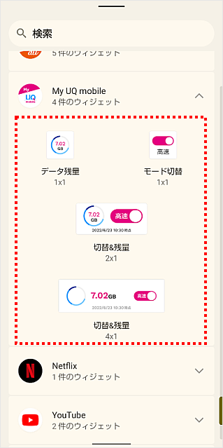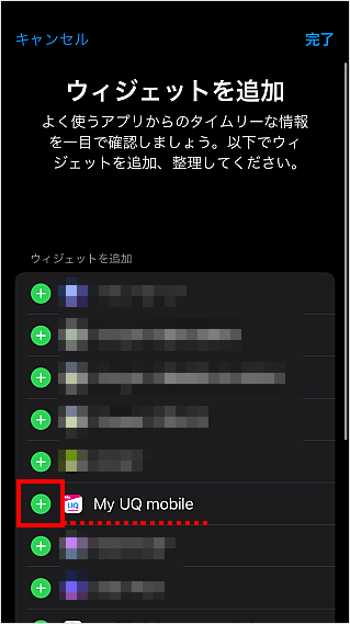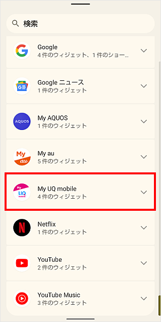 ウィジェット一覧から[My UQ mobile]をタップします。