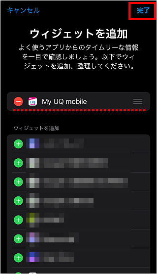 以上でMy UQ mobile アプリのウィジェットの設定は完了です。