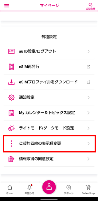 マイページの[ご契約回線の表示順変更]を選択します。