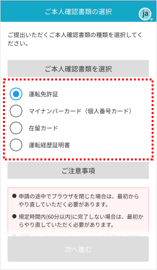 オンラインでのお手続きの場合は画面の案内にしたがって手順3へ進みます。
