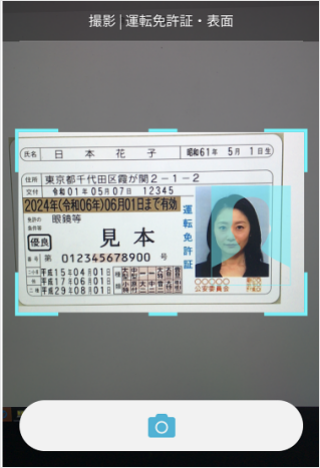 画面の指示に従い、本人確認書類(表面、厚み、裏面)を撮影します。
