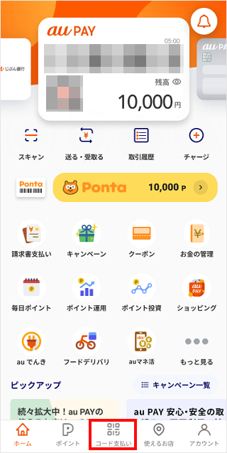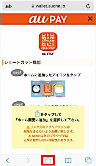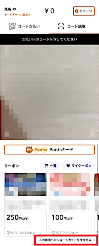 au PAY アプリから、コード支払い用ショートカットを作成できます。