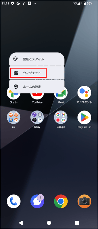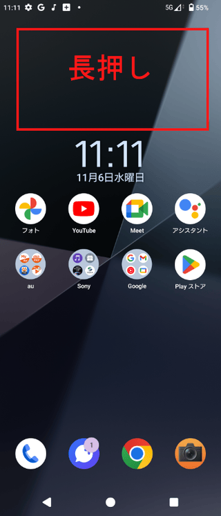 ホーム画面の空いている部分をロングタップ(長押し)します。