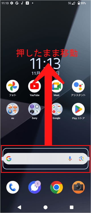Google検索バーを配置したい場所までドラッグ(押したまま移動)し、指を離します。