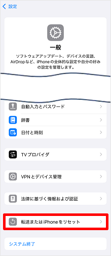 [転送またはiPhoneをリセット]をタップします。