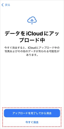 [アップロードを完了してから消去]、または[今すぐ消去]をタップします。
