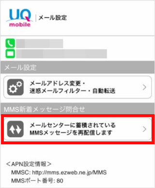 iPhoneの電源を数日間切っているなどでメール(MMS)を受信できなかった場合は、サーバにメール(MMS)が蓄積されている可能性があります。