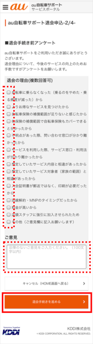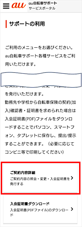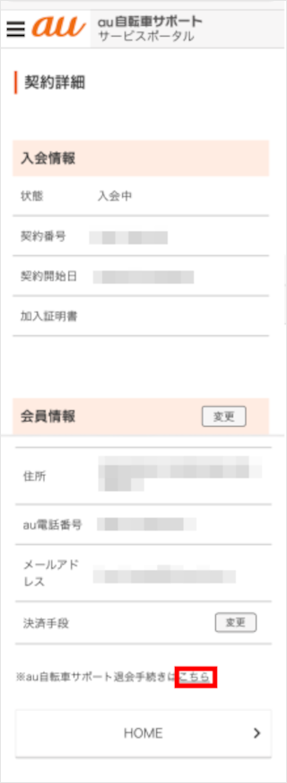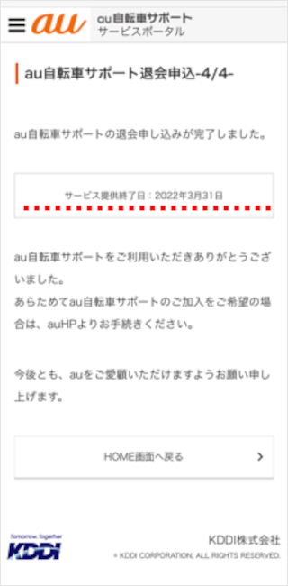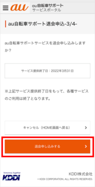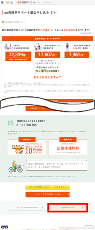 サービスの退会は、au自転車サポートの会員ページでお申し込みいただけます。