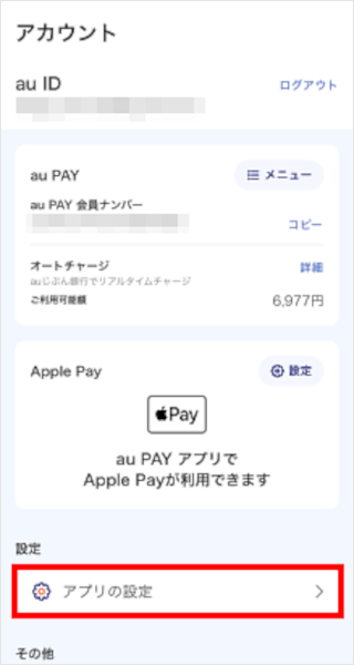 au PAY アプリのセキュリティロックは、au PAY アプリのアカウント画面で設定できます。