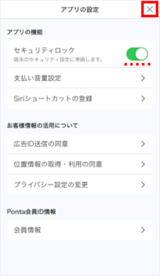 ※設定後、アプリを開いた際のロック解除方法は、端末に設定しているロック(指紋認証、Face ID、パスワードなど)と同じになります。
