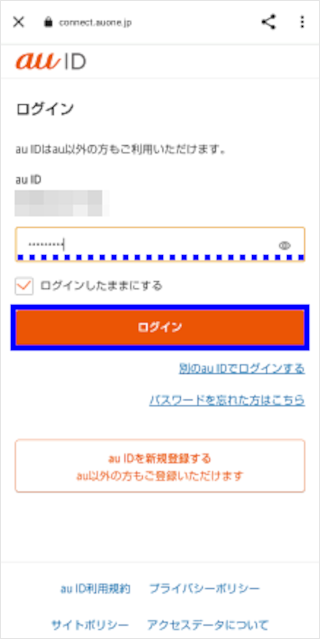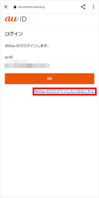 [別のau IDでログインしたい方はこちら]をタップします。