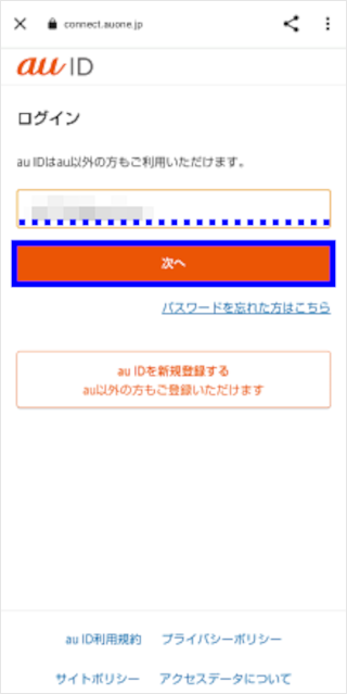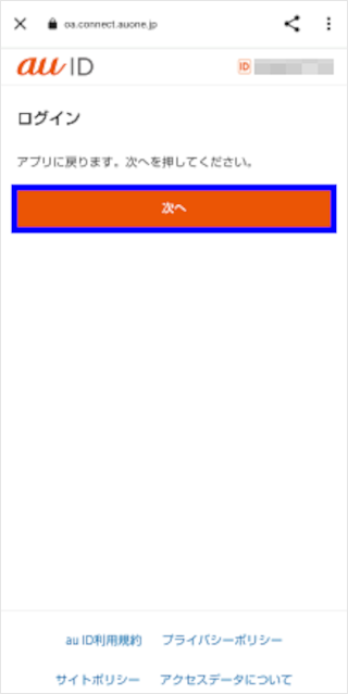 ログインしたいau IDを入力し、[次へ]をタップします。