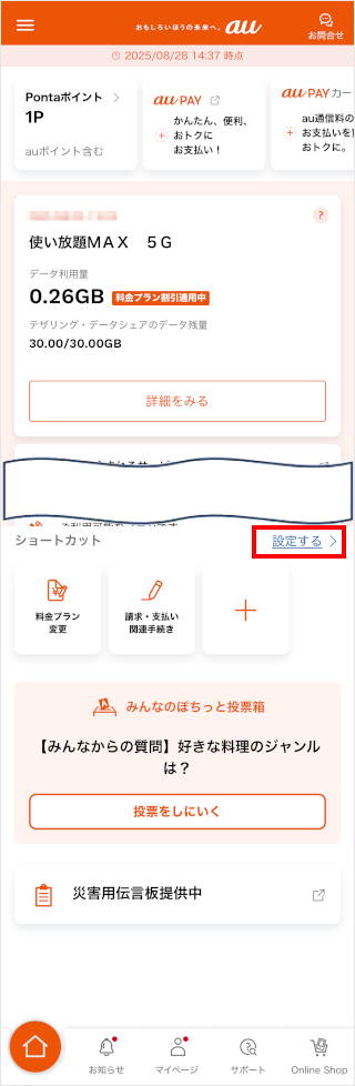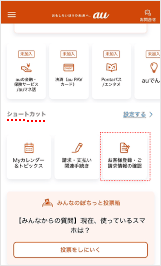 「My UQ mobile(アプリ)」内でショートカットを設定できます。
