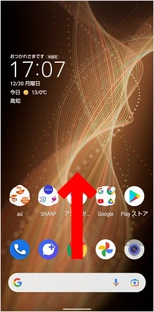 ホーム画面を下から上へスライドし、アプリ一覧を表示します。