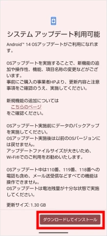 ※「お使いのシステムは最新の状態です」と表示されている場合は更新不要です。