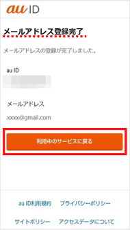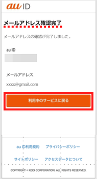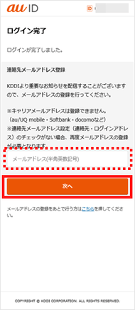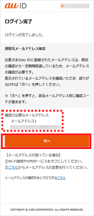 そのため、au IDログイン後やパスワード再設定後の画面において、連絡先メールアドレスの登録/確認画面が表示されます。