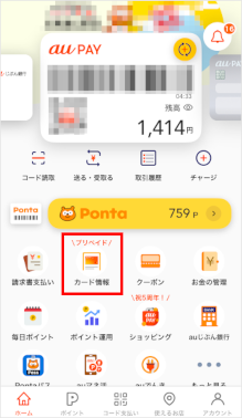 au PAY アプリを操作することで、画面に表示できます。