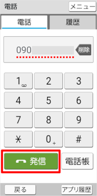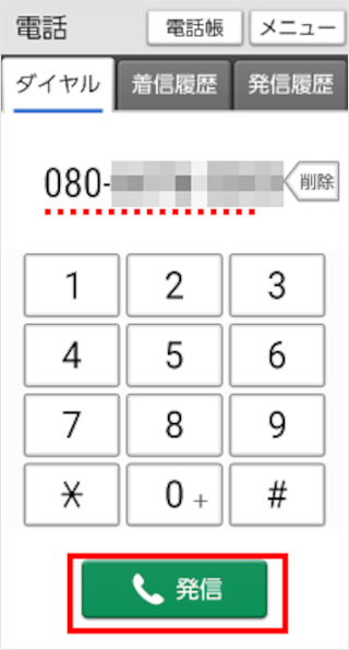 電話番号を入力後、[発信]をタップします。