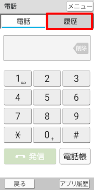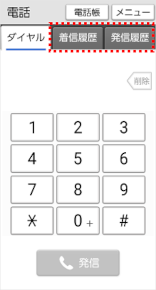[着信履歴]または[発信履歴]をタップします。
