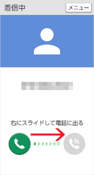 着信中に、[電話マーク]を長押ししたままスライドします。