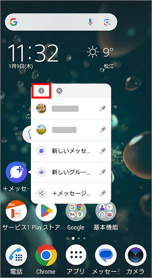 ホームまたはアプリ一覧より[+メッセージ]アプリアイコンを長押しします。