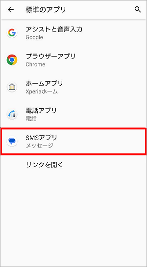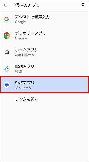 ※項目名は「デフォルトのアプリ」「標準アプリを選択」など、機種やOSバージョンによって異なります。
