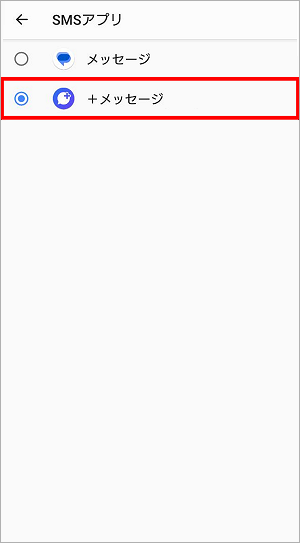 デフォルトのSMSアプリ(標準アプリ)は1つのアプリしか設定できませんが、「+メッセージ」アプリから変更することができます。