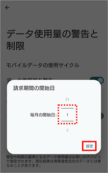 月初から月末のデータ使用量を管理したい場合は「1」を選択します。