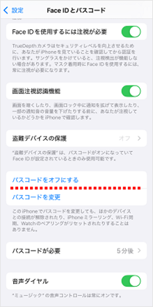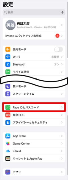 [Face IDとパスコード]または[Touch IDとパスコード]をタップします。