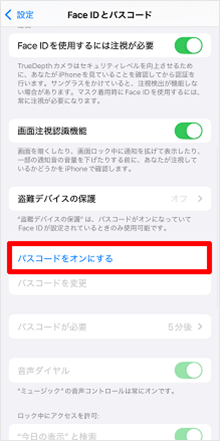 [パスコードをオンにする]をタップします。