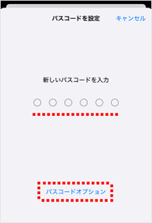 ※4桁のパスコードの設定、あるいはカスタムの数字・英数字コードを設定する場合は[パスコードオプション]をタップしてください。