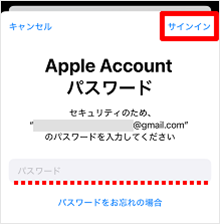 Apple Accountのパスワードを入力し、[サインイン]をタップします。