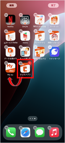 アプリが波打ち始めるまで、ホーム画面の背景をタッチして押さえたままにします。
