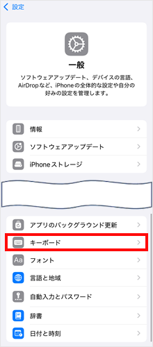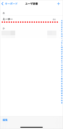 「設定アプリ」でユーザ辞書に登録した単語を削除します。
