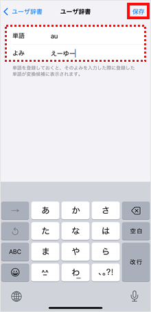 「単語」と「よみ」を入力し、[保存]をタップします。