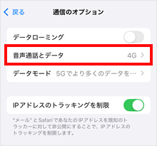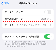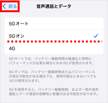 「5Gオン」に切り替わりました。[戻る]をタップします。