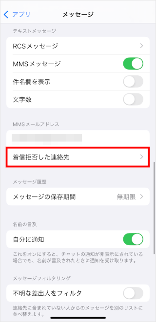 STEP1:対象アカウントのブロックを解除する方法(iOS メッセージアプリ)
