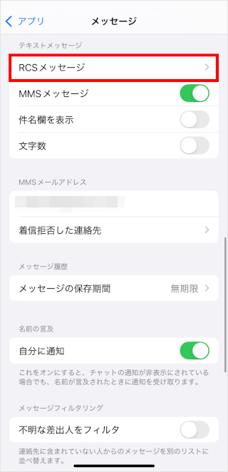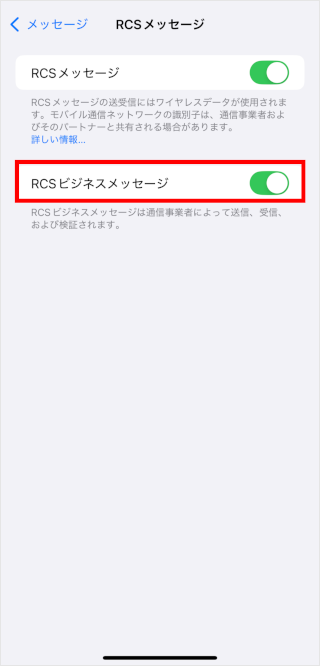 STEP2:「RCSビジネスメッセージ」がオンになっているか確認する方法