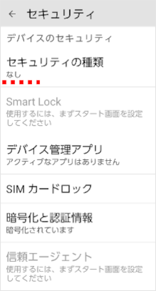 設定アプリの「セキュリティの種類」で画面ロックを「なし」に設定することができます。