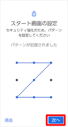 セキュリティの種類が「パターン」に設定されていたら完了です。